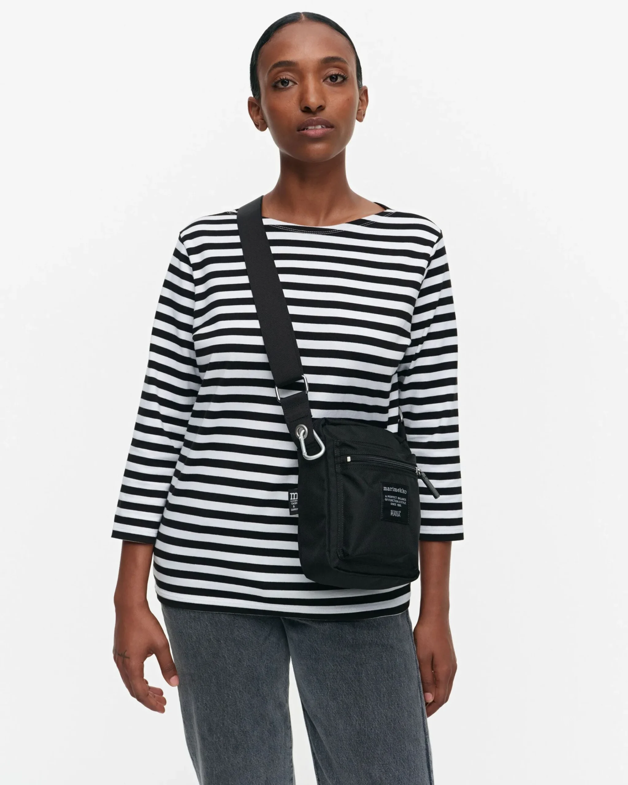 Cash & Carry -Olkalaukku On Valmistettu Kierrätetystä Polyamidista. Laukussa On Vetoketjusuljenta, Kaksi Pientä Vetoketjutaskua Ulkopuolella Ja Yksi Vetoketjutasku Sisäpuolella. Säädettävä Olkahihna On Valmistettu Nailonista Ja Siinä On Metallinen Lenkki Pienten Tavaroiden Kiinnittämistä Varten.