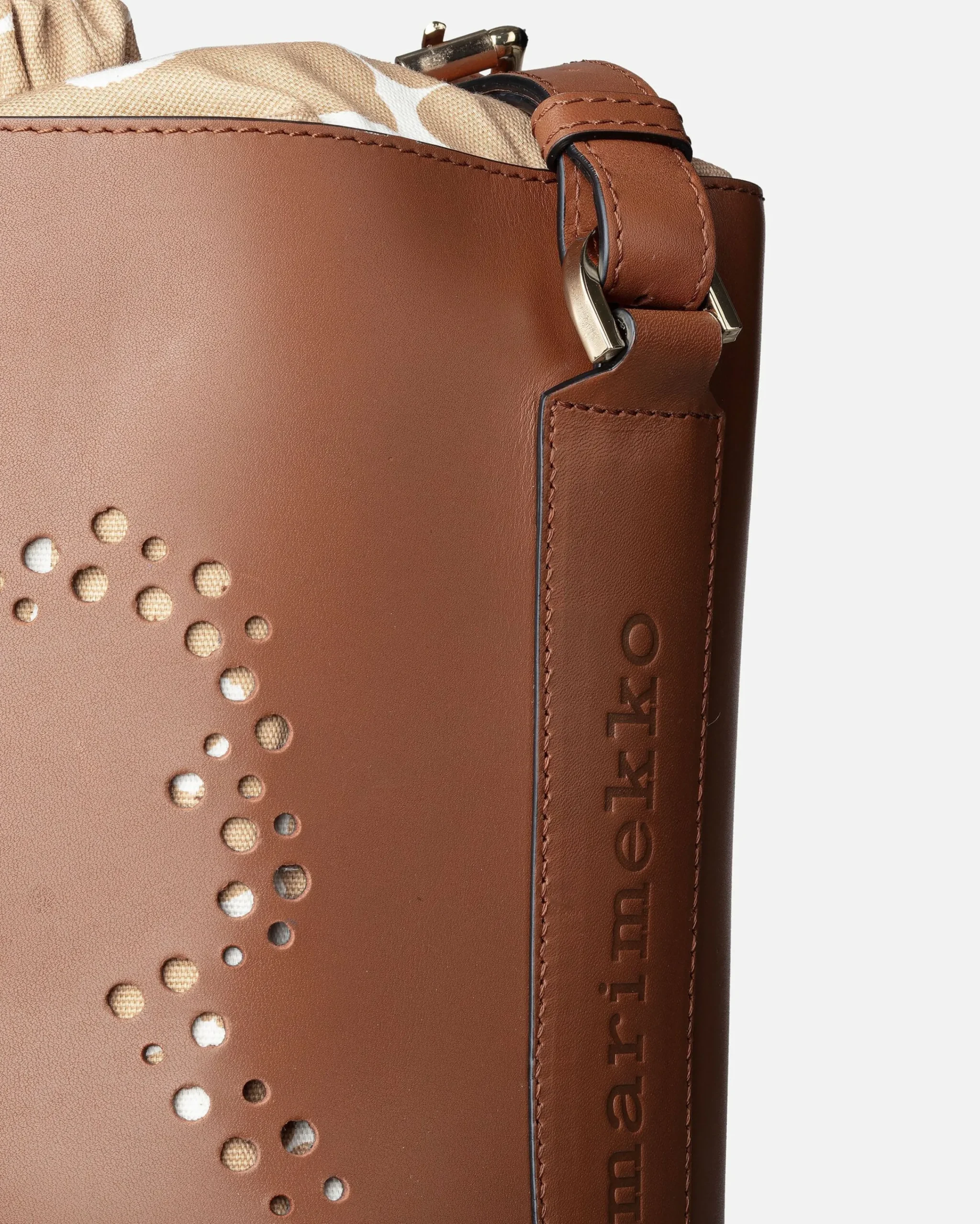 Imprint Tote Unikko -Laukku On Valmistettu Jäljitettävästä Skandinaavisesta Nahasta. Etupuolen Unikko-Kukka Muodostuu Pitsimäisesti Pienistä Rei’Istä. Laukussa On Säädettävä Olkahihna. Laukun Suuaukko Vedetään Kiinni Nahkahihnojen Avulla Ja Kiinnitetään Stopparilla. Laukussa On Yksi Sisätasku. Sisävuori On Valmistettu Unikko-Kuosisesta Puuvillasta. Marimekko-Logo On Kohokuvioitu Laukun Sivuihin Ja Pohjaan.