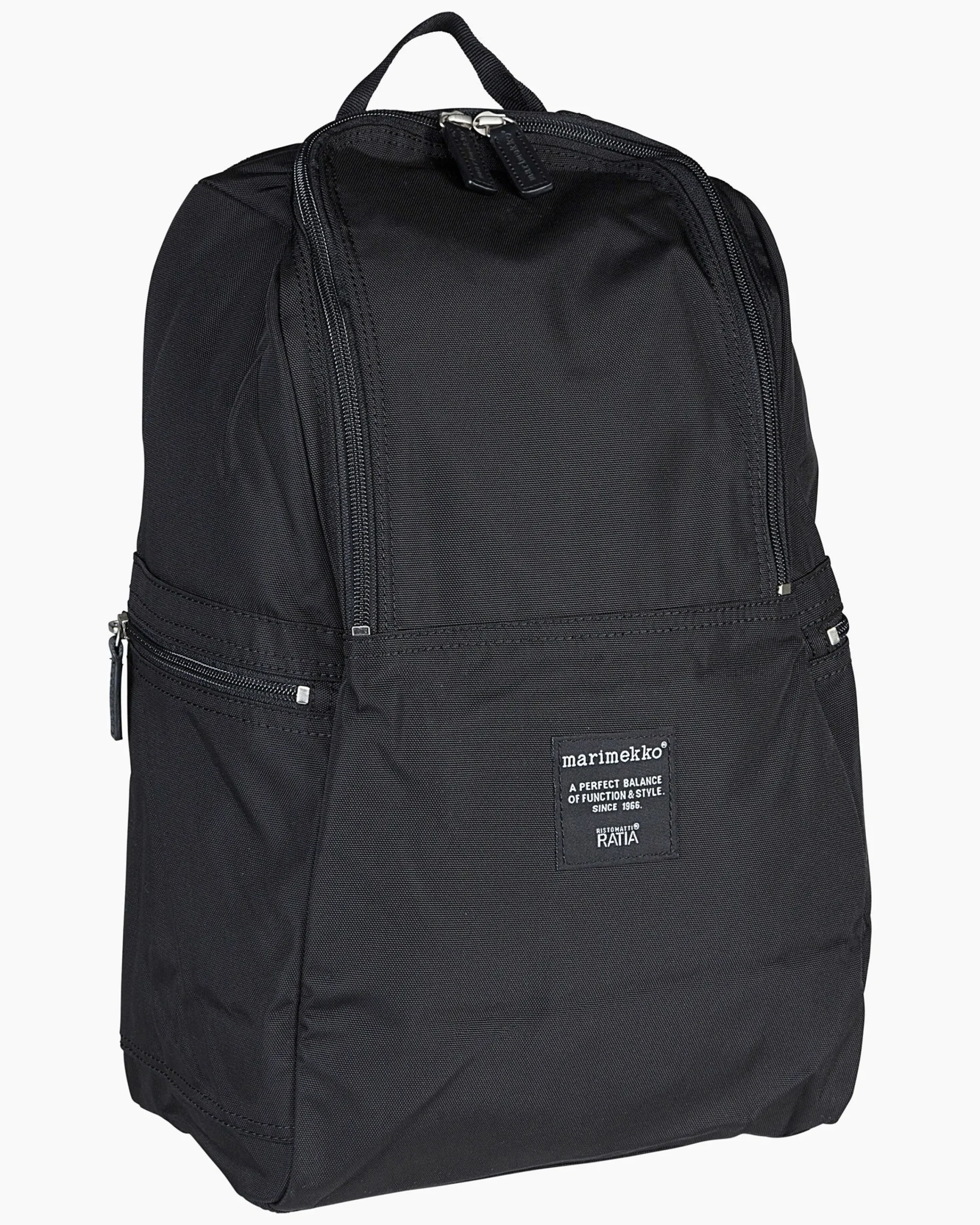 Polyamidista Valmistetussa Repussa On Pehmustetut Ja Säädettävät Olkahihnat Sekä Kaksi Vetoketjullista Ulkotaskua Sivuilla. Sisällä On Topattu Tasku 11 Tuuman Kannettavalle Sekä Vetoketjullinen Verkkotasku.