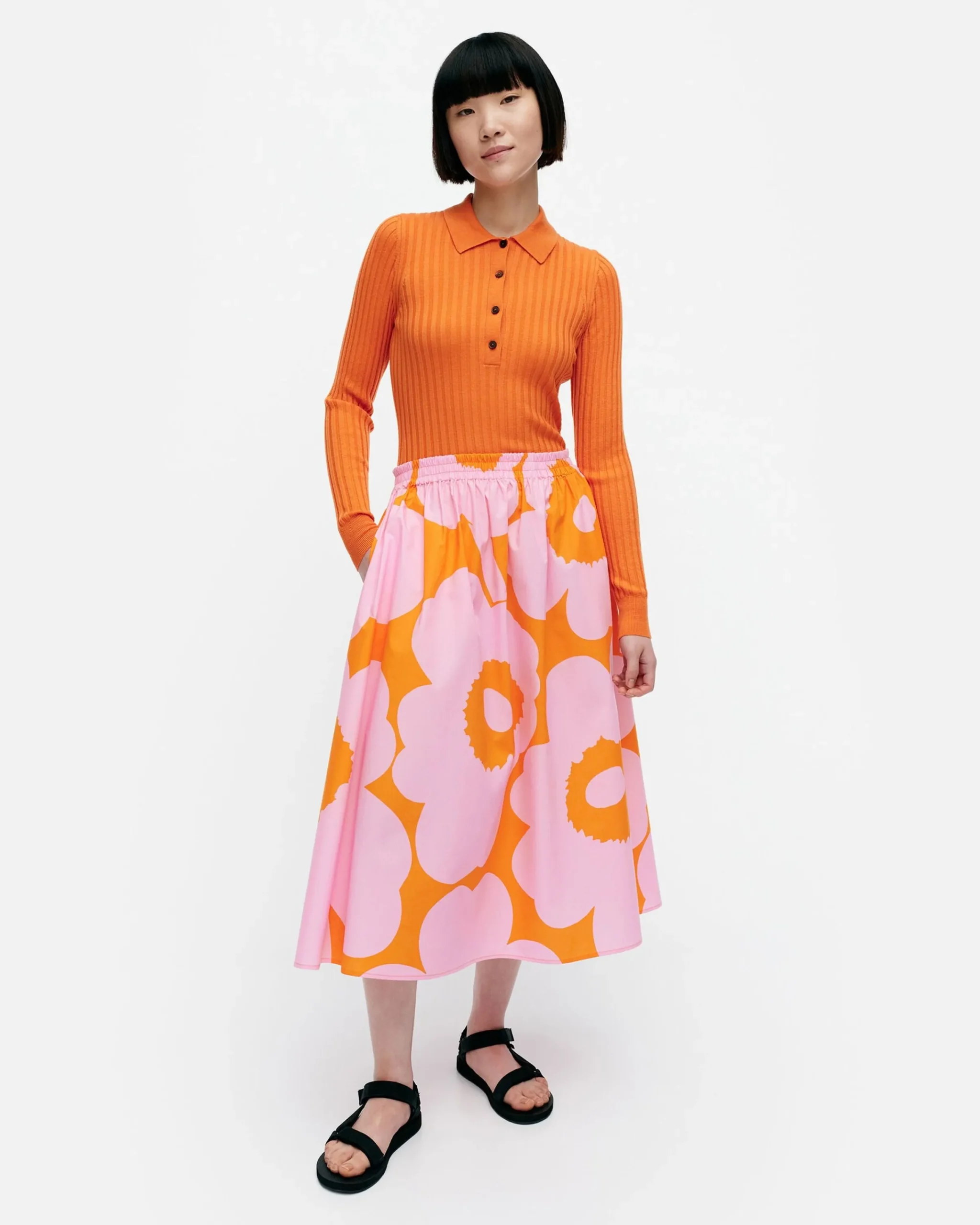 Maija Isola Loi Unikko-Kuvion, Kuviosuunnittelun Kansainvälisen Ikonin, Vuonna 1964. Marimekon Perustaja Armi Ratia Ajatteli, Ettei Kukkien Todellista Olemusta Ole Mahdollista Vangita Kuvioon. Tämän Vuoksi Marimekon Mallistoihin Ei Aiemmin Kukkia Kuulunut. Maija Isola Suunnittelikin Unikko-Kuvion Pikemminkin Abstraktiksi Tulkinnaksi Kuin Fotorealistiseksi Toisinnoksi Kukkateemasta. Tänä Päivänä Unikko On Vahva Ilon Ja Luovuuden Symboli Sekä Tärkeä Osa Marimekon Designidentiteettiä.Koko & Istuvuus