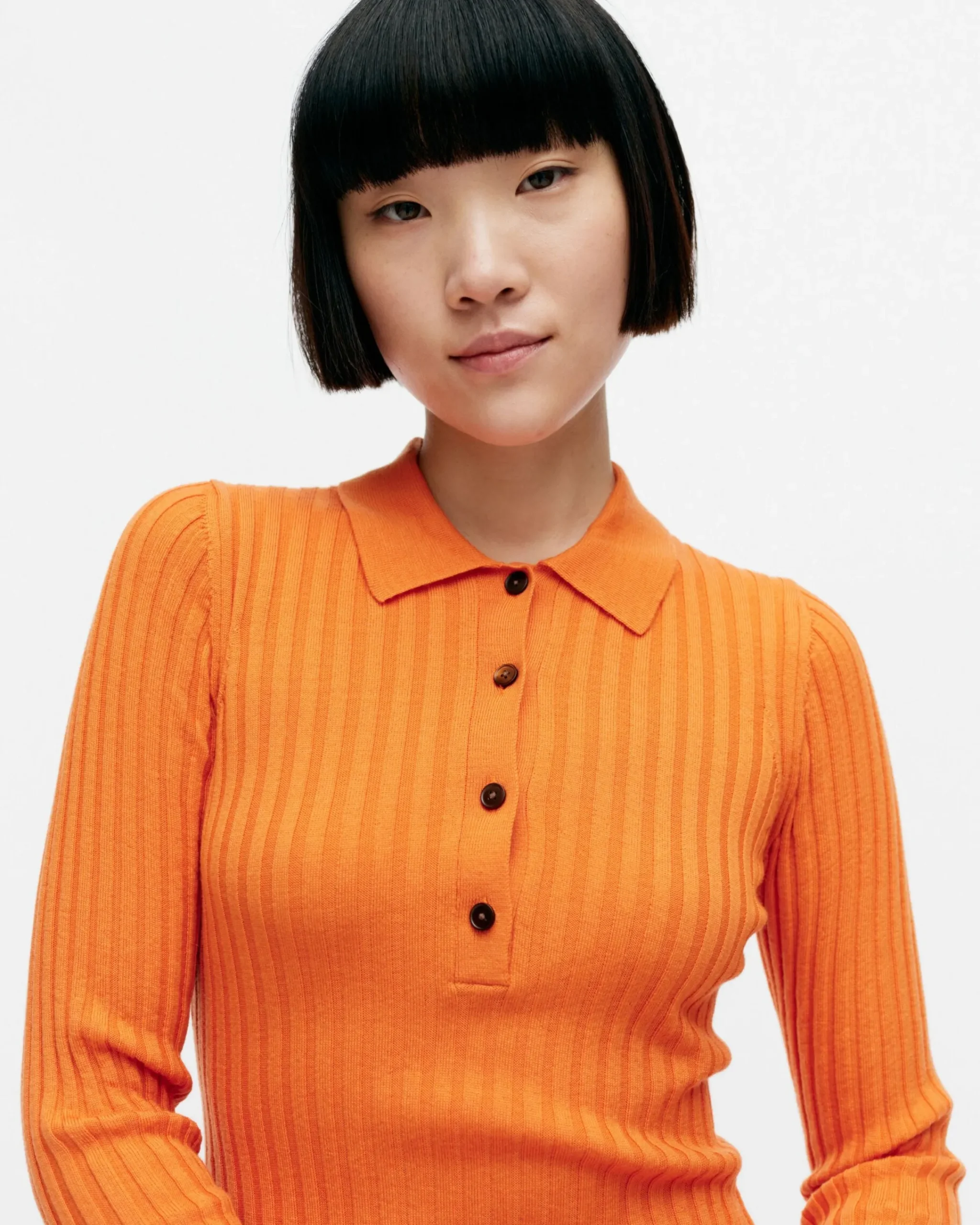 Iitu-Neulepuserossa On Vartalonmyötäinen Istuvuus, Suora Leikkaus Ja Se On Valmistettu Ohuesta Merinovillaribbistä, Joka On Sertifioitua. Neulepuserossa On Kaulukset, Lyhyt Nappilista Etupääntiellä Ja Leveät Resorit Hihansuissa.Koko & Istuvuus