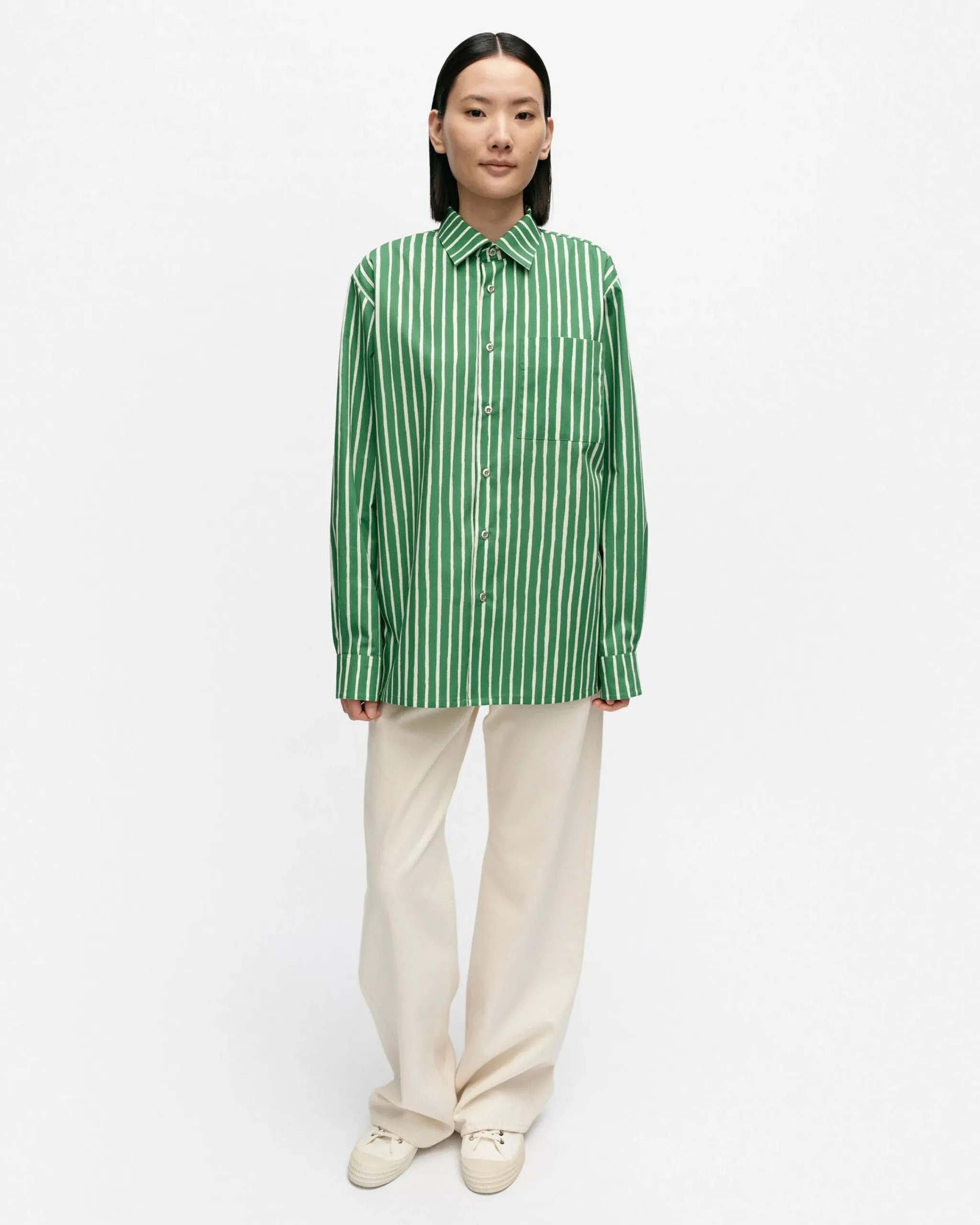 Piccolo-Kuosisessa Jokapoika-Puuvillapaidassa On Rento Istuvuus Ja Suora Leikkaus. Paidassa On Kaulukset, Metallinappisuljenta Ja Rintatasku. Hihansuissa On Mansetit, Joissa On Metallinapit. Kangas On Painettu Helsingissä.