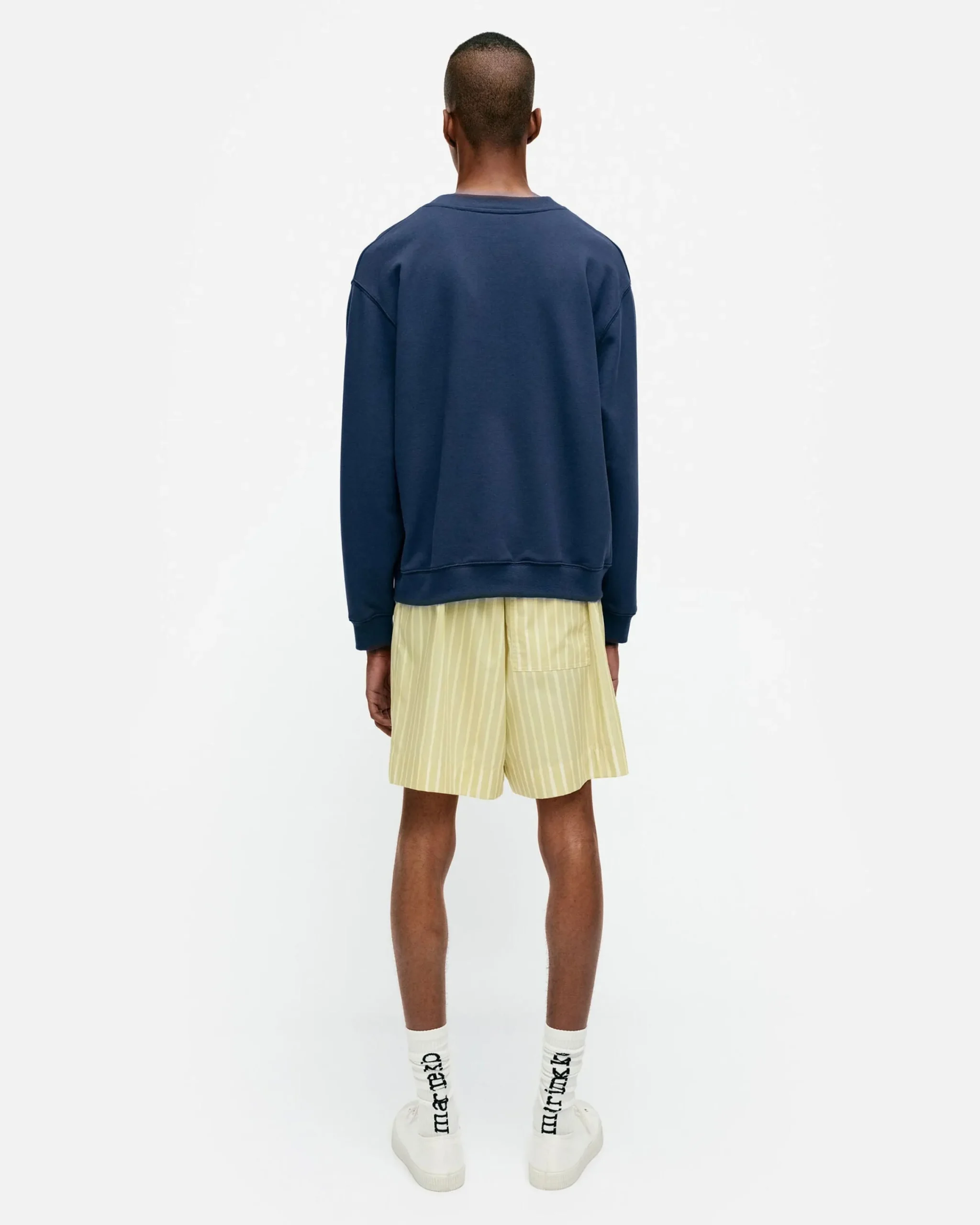 Puuvillacollegesta Valmistetussa Leiot-Paidassa On Rento Istuvuus Ja Etupuolella Kappalepainettu Unikko -Kuosin Kukka. Tuotteen Sisältämästä Puuvillasta 25 Prosenttia On Peräisin Marimekon Trikootuotteiden Valmistuksessa Syntyneestä Hukkamateriaalista. Collegepaidassa On Resorikantilla Huoliteltu Pyöreä Pääntie Ja Hihansuissa Sekä Helmassa On Leveät Resorit.
