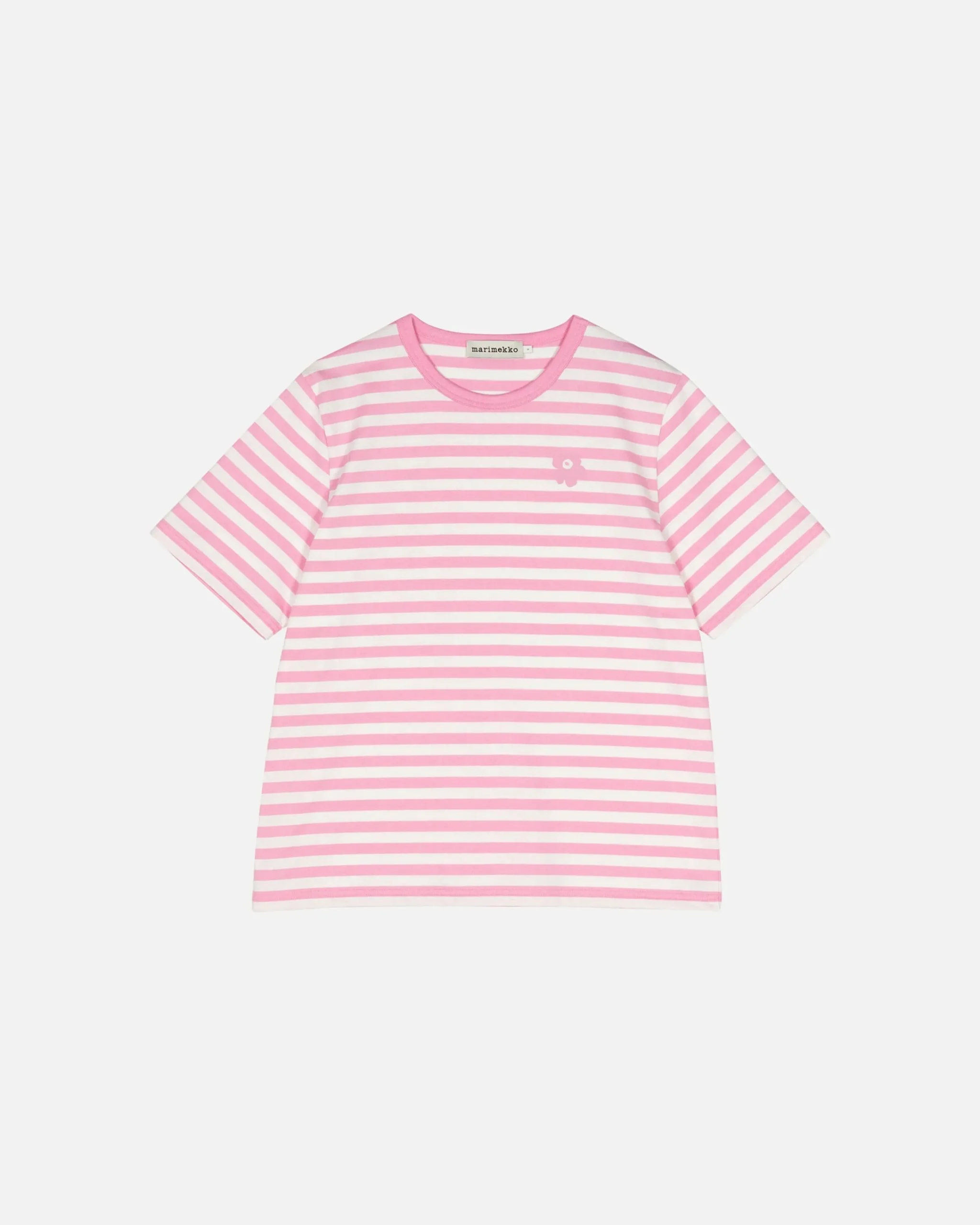 Shortsleeve-T-Paita On Valmistettu Puuvillatrikoosta Ja Siinä On Rento Istuvuus. T-Paidassa On Tasaraita-Kuosi Ja Rintaan On Painettu Pieni Unikko-Kuosin Kukka. Pyöreä Pääntie On Viimeistelty Resorilla.