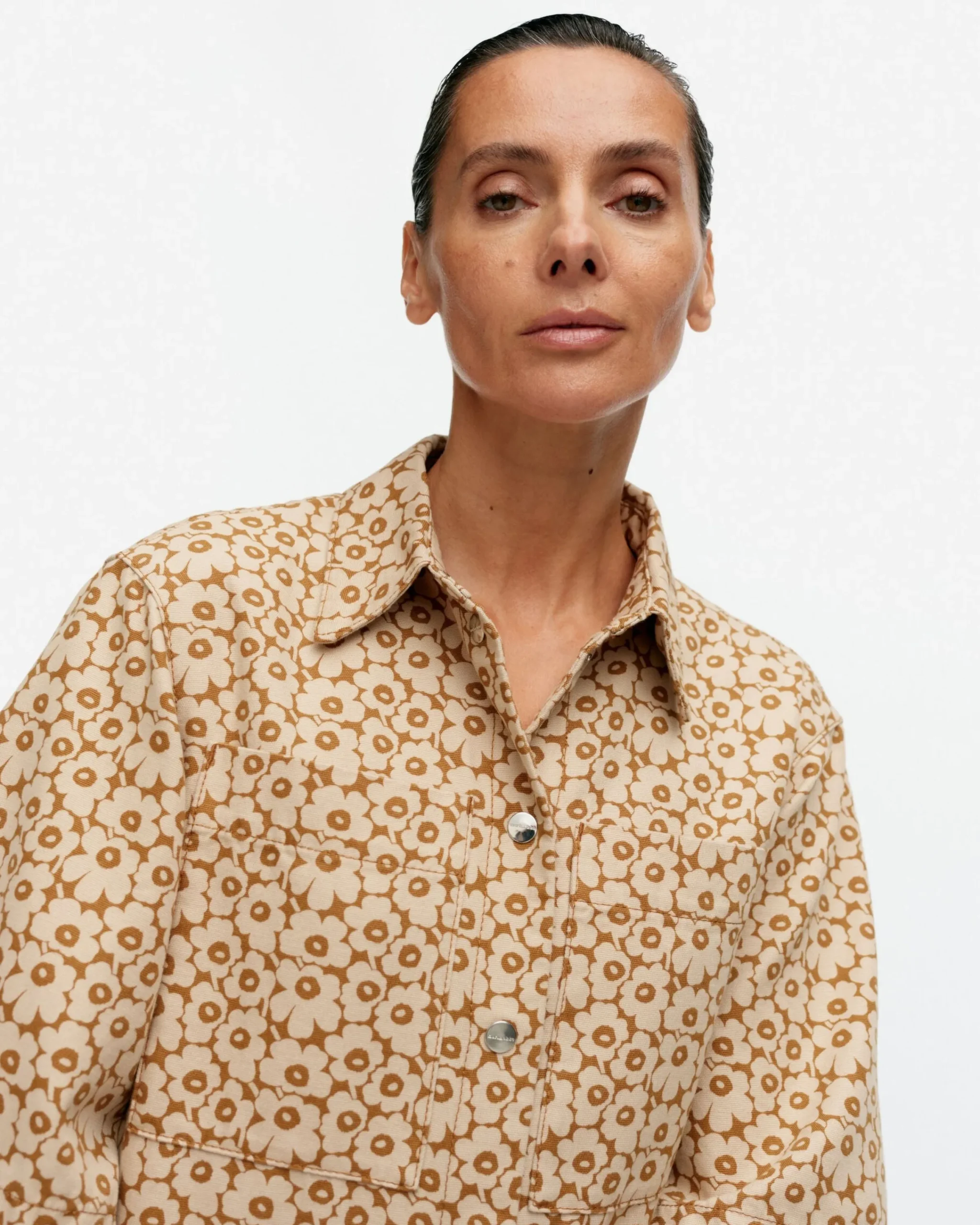 Unikko-Kuosinen Kukkein-Haalari On Valmistettu Ryhdikkäästä Luomupuuvillasta Ja Siinä On Rento Istuvuus Sekä Suora Leikkaus. Haalarissa On Paitakaulukset, Painonappisuljenta, Rintataskut Ja Väljät, Kyynärmittaiset Hihat. Takana On Selkäkaarroke, Kuminauhavyötärö Ja Paikkataskut. Sivusaumoissa On Taskut.