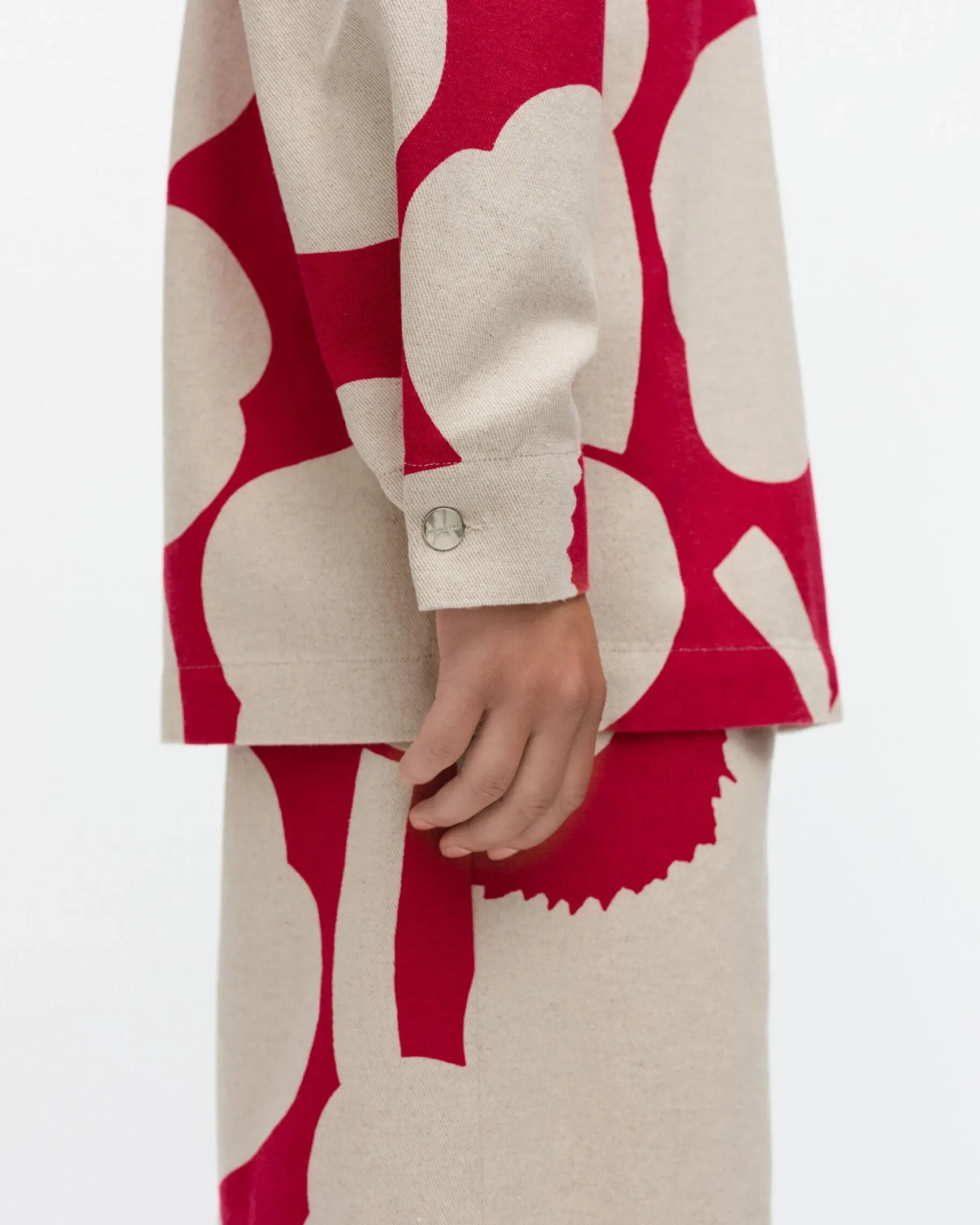 Kulmat-Paitatakki On Valmistettu Puuvillapellavatvillistä Ja Siinä On Rento Istuvuus, Suora Leikkaus Ja Unikko-Kuosi, Joka On Painettu Helsingissä. Paitatakissa On Kaulukset, Farkkunappisuljenta Ja Rintatasku. Hihansuissa On Napit Ja Kiristysmahdollisuus.