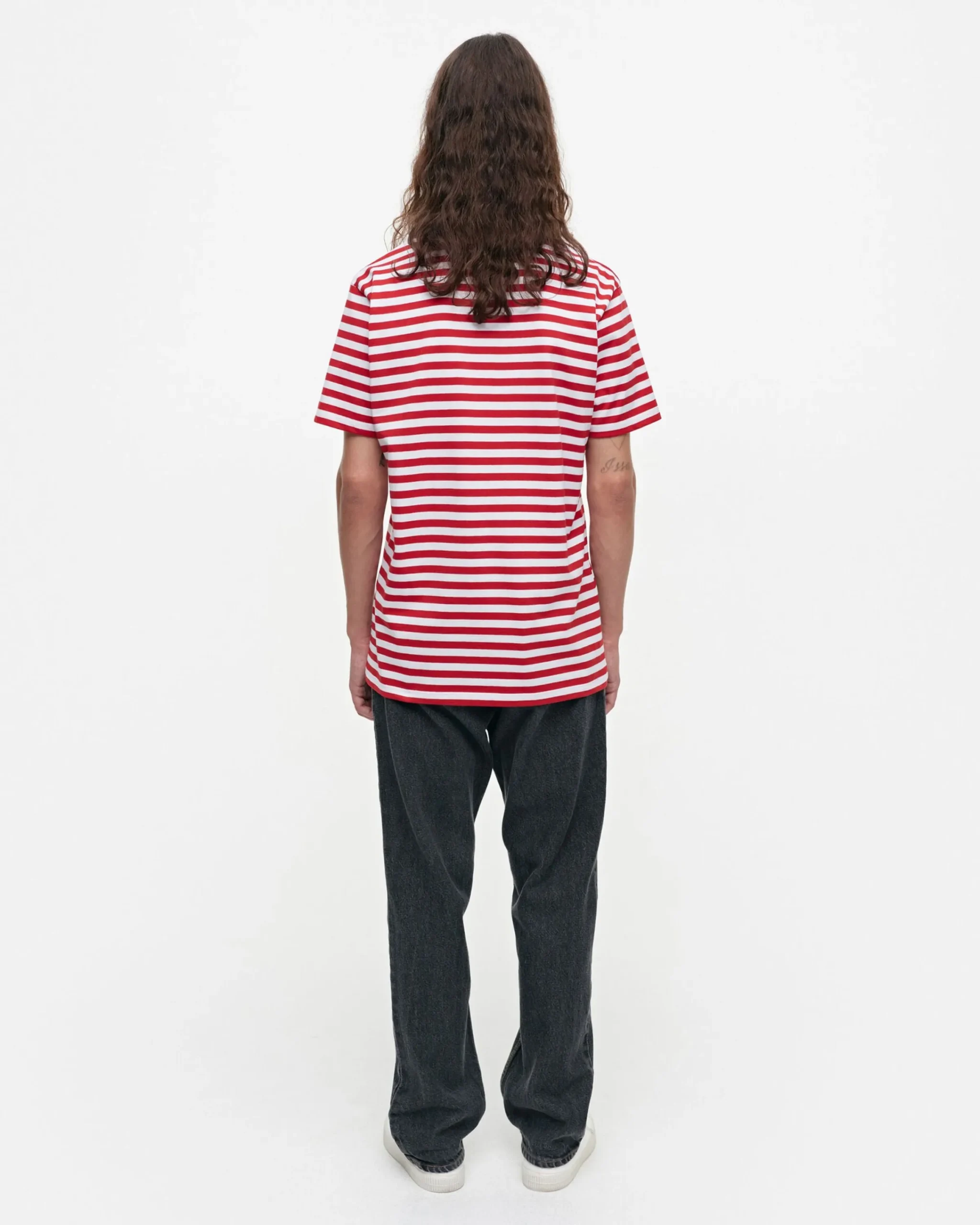 Lyhythiha-Paita On Valmistettu Klassisesta Tasaraita-Kuosisesta Puuvillatrikoosta. Paidassa On Resorikantti Pääntiessä Ja Suora Leikkaus. Paita On Unisex-Mallinen Ja -Kokoinen.