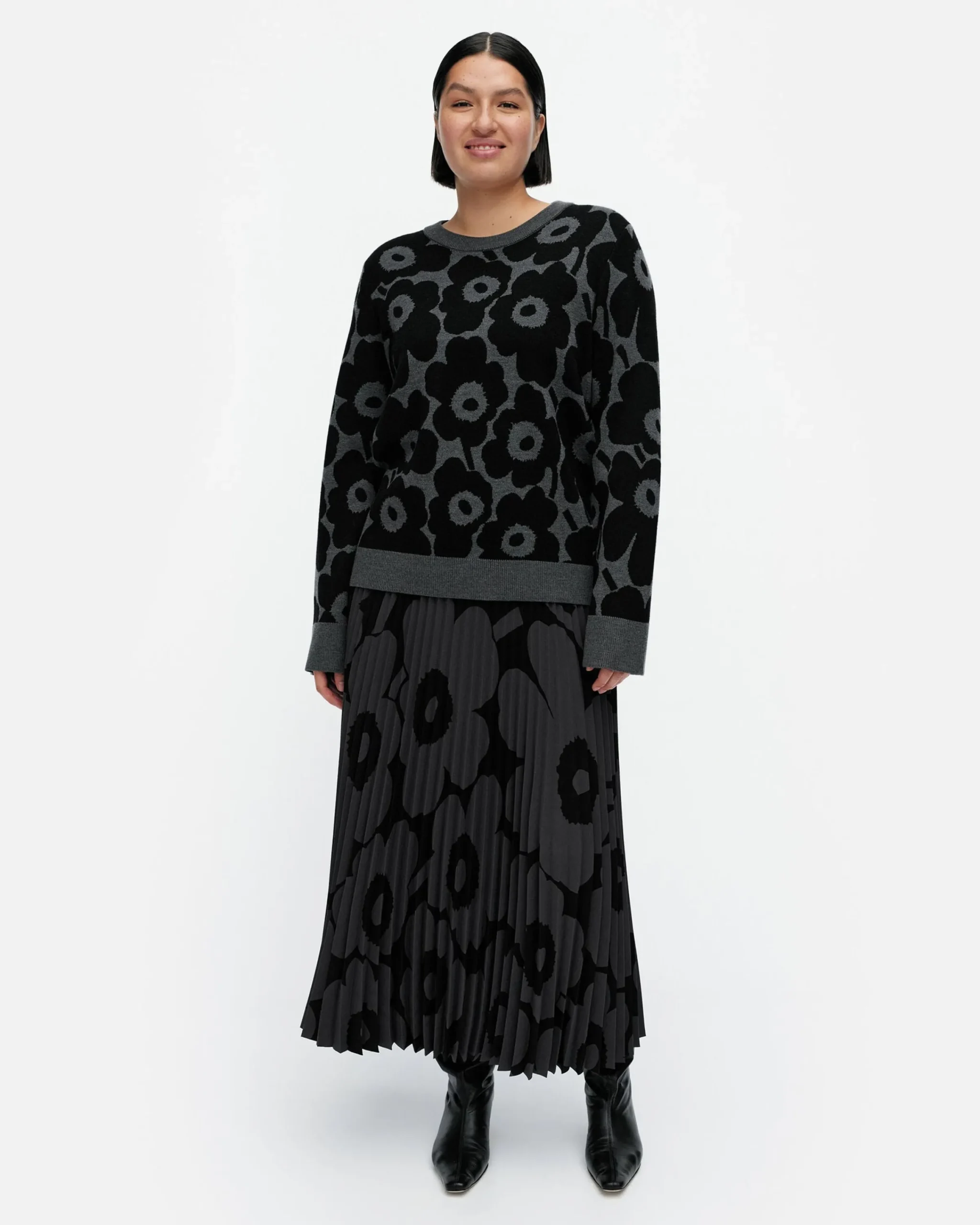 Unikko-Kuosinen Tahti-Neulepusero On Valmistettu Sertifioidusta Merinovillasta Ja Siinä On Niukka Istuvuus Ja Suora Leikkaus. Neulepuserossa On Tuplaresori Pyöreässä Pääntiessä Ja Leveät Resorit Hihansuissa Sekä Helmassa.