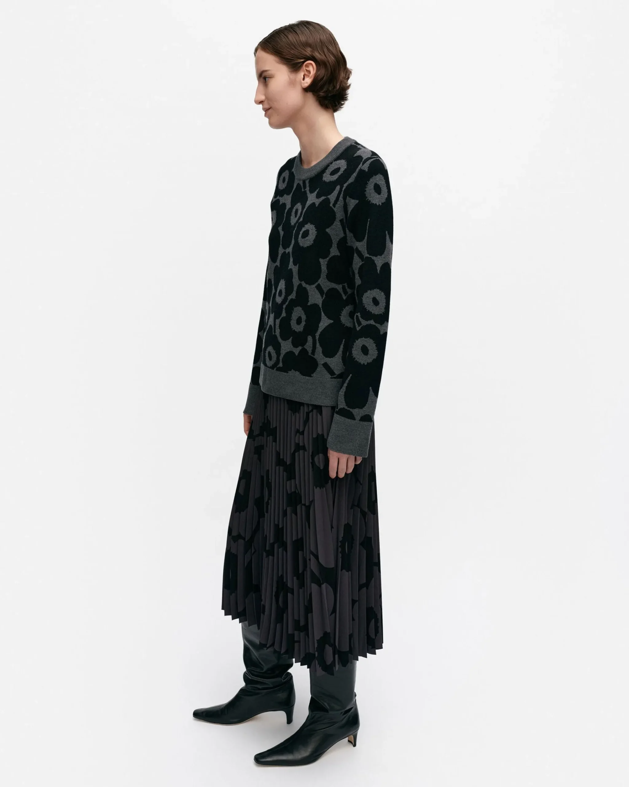 Unikko-Kuosinen Tahti-Neulepusero On Valmistettu Sertifioidusta Merinovillasta Ja Siinä On Niukka Istuvuus Ja Suora Leikkaus. Neulepuserossa On Tuplaresori Pyöreässä Pääntiessä Ja Leveät Resorit Hihansuissa Sekä Helmassa.