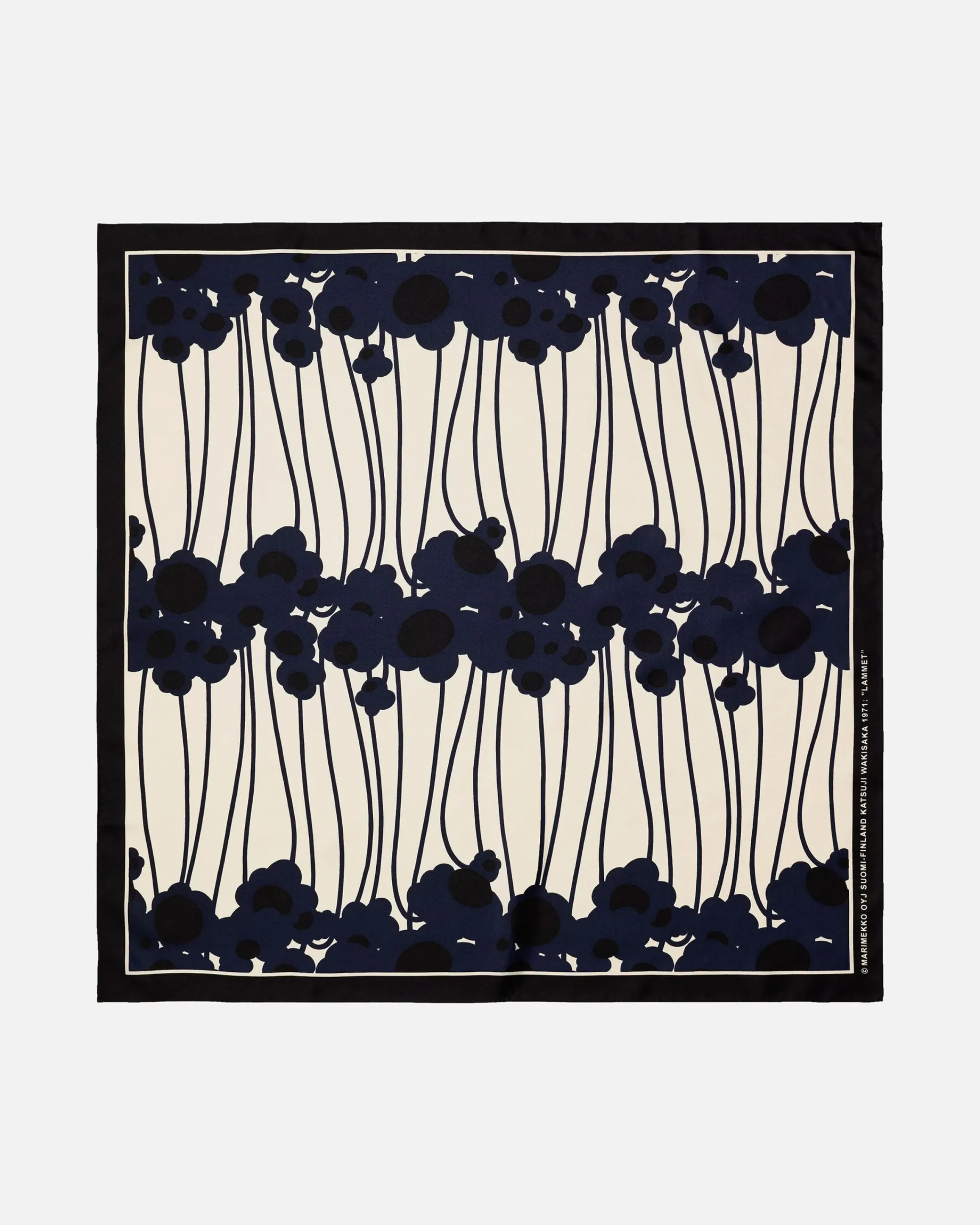 Lauhtua-Silkkihuivi On Valmistettu Silkkitvillistä Ja Siinä On Lammet -Kuosi. Huivi On Pakattu Lokki-Kuosiseen Laatikkoon.