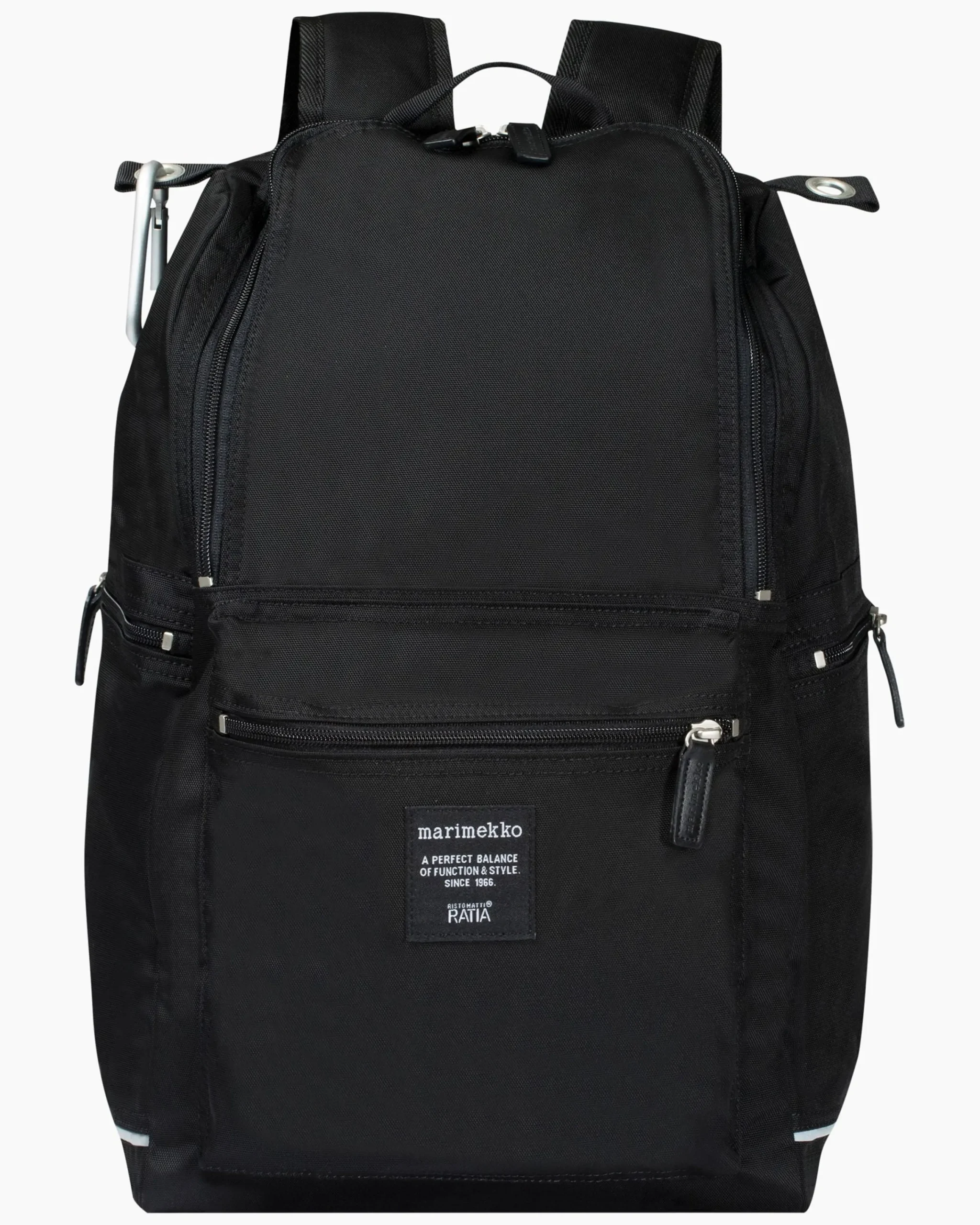 Polyamidista Valmistetussa Repussa On Pehmustetut Ja Säädettävät Olkahihnat Sekä Kolme Vetoketjullista Ulkotaskua. Sisäpuolella On Selkäpehmuste Ja Vetoketjullinen Verkkotasku.