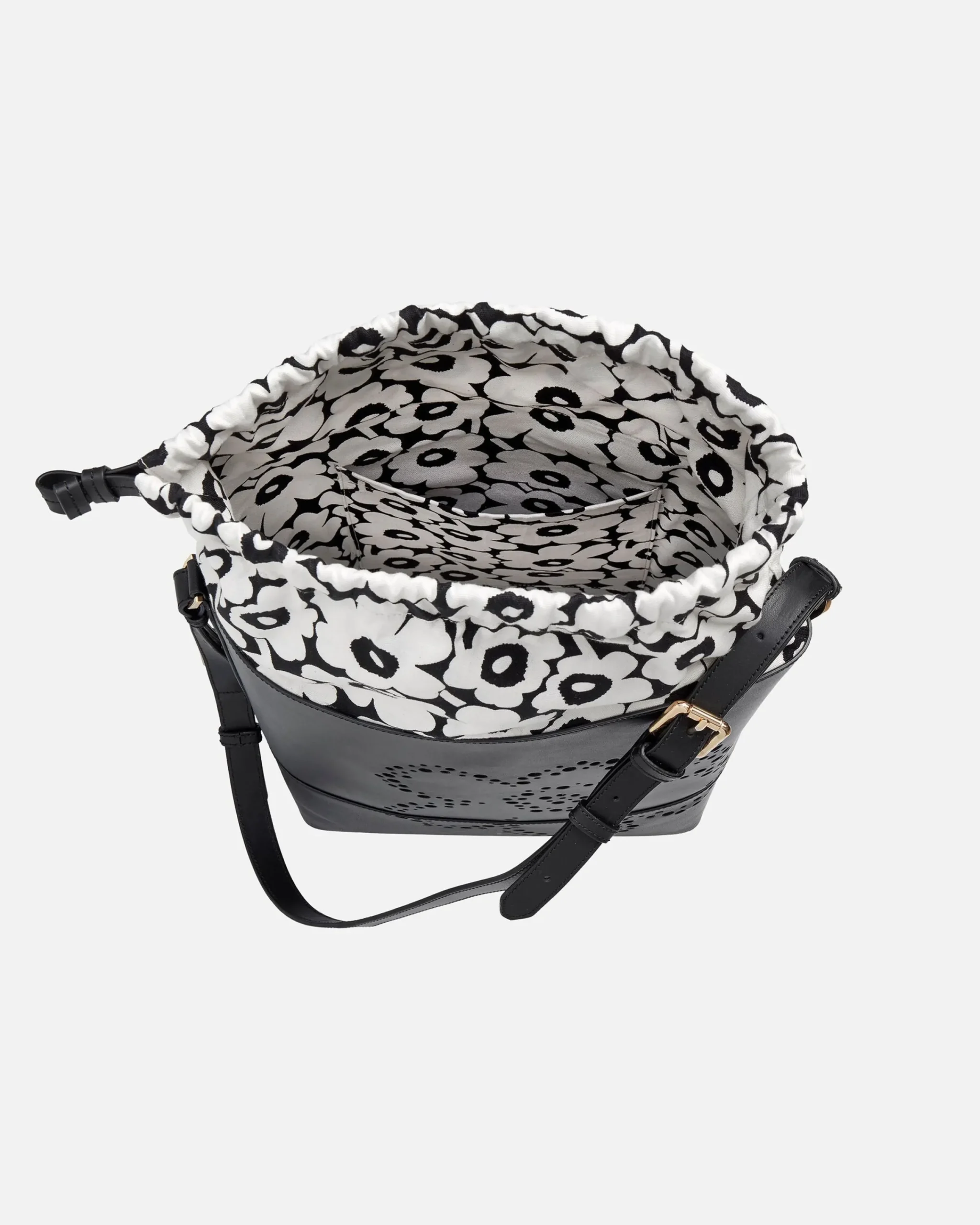 Imprint Tote Unikko -Laukku On Valmistettu Jäljitettävästä Skandinaavisesta Nahasta. Etupuolen Unikko-Kukka Muodostuu Pitsimäisesti Pienistä Rei’Istä. Laukussa On Säädettävä Olkahihna. Laukun Suuaukko Vedetään Kiinni Nahkahihnojen Avulla Ja Kiinnitetään Stopparilla. Laukussa On Yksi Sisätasku. Sisävuori On Valmistettu Unikko-Kuosisesta Puuvillasta. Marimekko-Logo On Kohokuvioitu Laukun Sivuihin Ja Pohjaan.