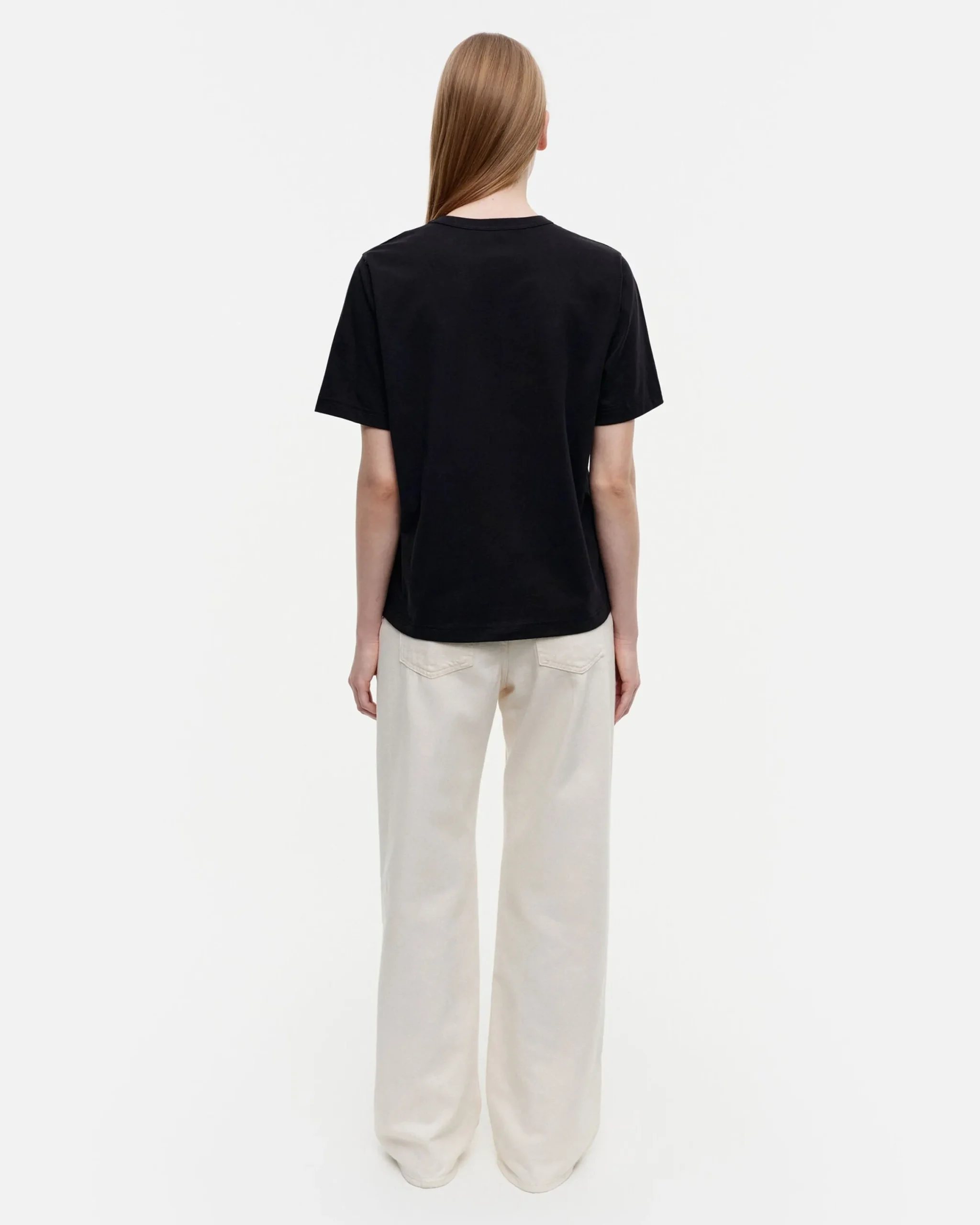 Luomupuuvillatrikoosta Valmistetussa Erna-T-Paidassa On Rento Istuvuus Ja Etupuolella Suuri Painettu Unikko-Kukka.Koko & Istuvuus