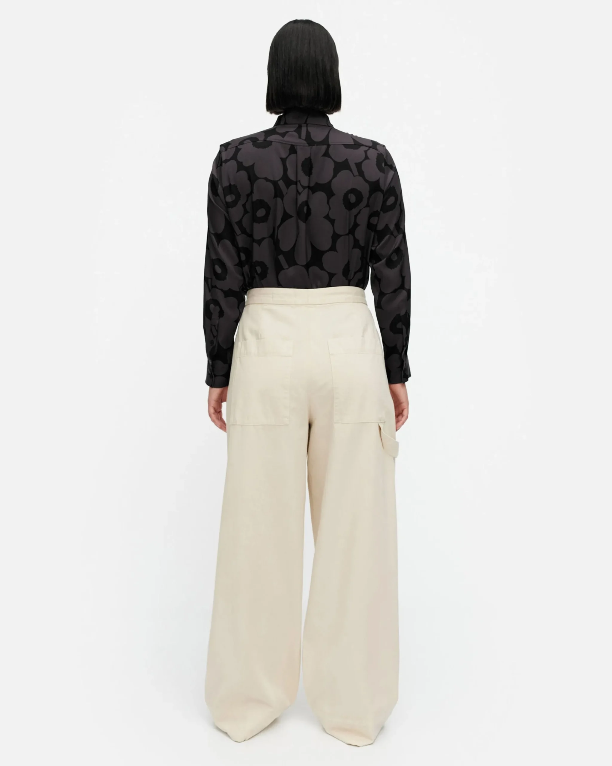 Funktio-Housut On Valmistettu Luomupuuvillatvillistä Ja Niissä On Rento Istuvuus Ja Suora Leikkaus. Housut On Kasvivärjätty Tammenäkämällä. Housuissa On Painonappikiinnitys Ja Housuvetoketju Edessä, Sivusaumataskut, Vasaralenkki Ja Takana Paikkataskut.Koko & Istuvuus