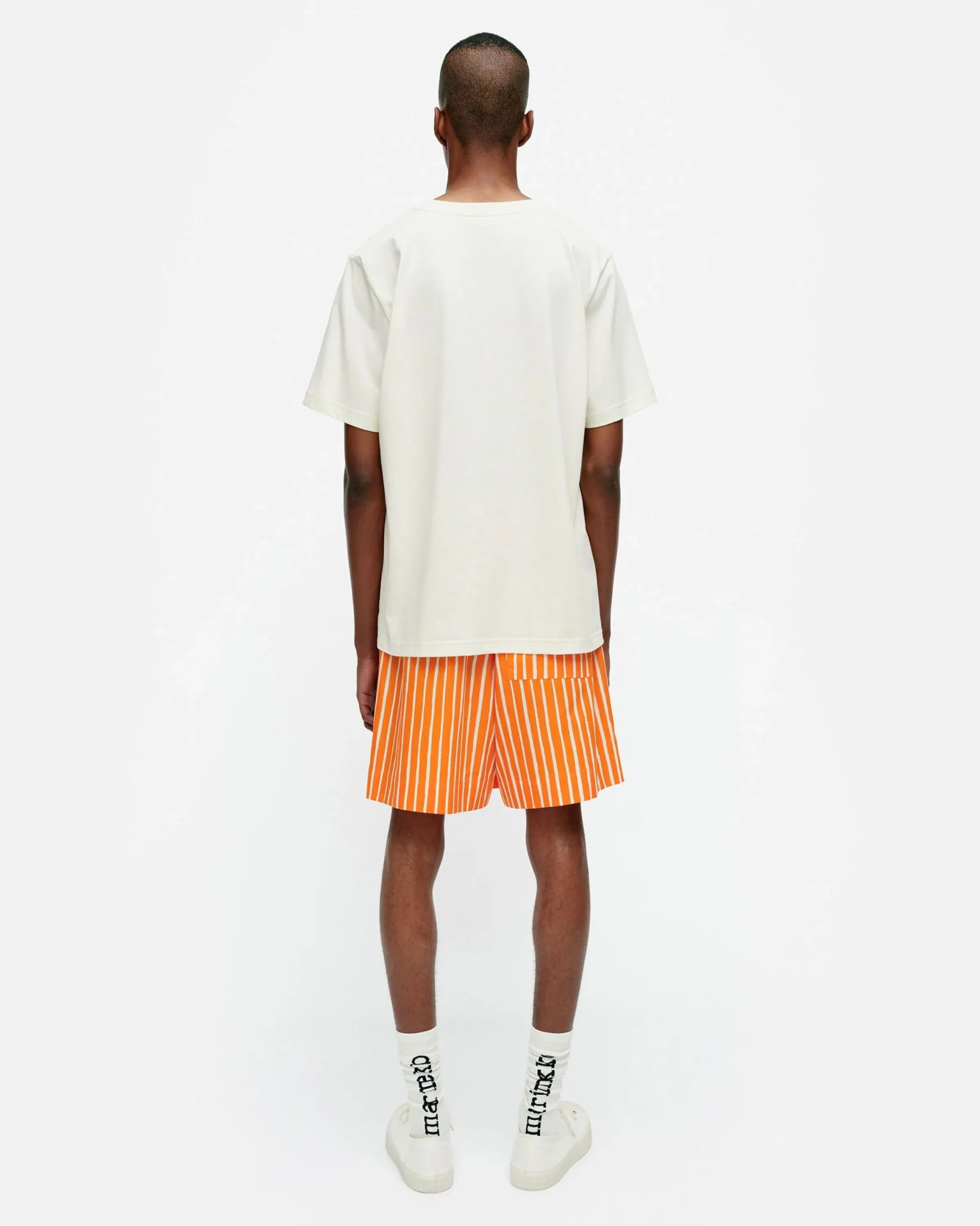 Embla-T-Paita On Valmistettu Luomupuuvillatrikoosta Ja Siinä On Miesten Mitoitus. T-Paidassa On Resori Pyöreässä Pääntiessä Ja Kappalepainettu Unikko-Kuosi Sekä Marimekon Printtiteksti Edessä.