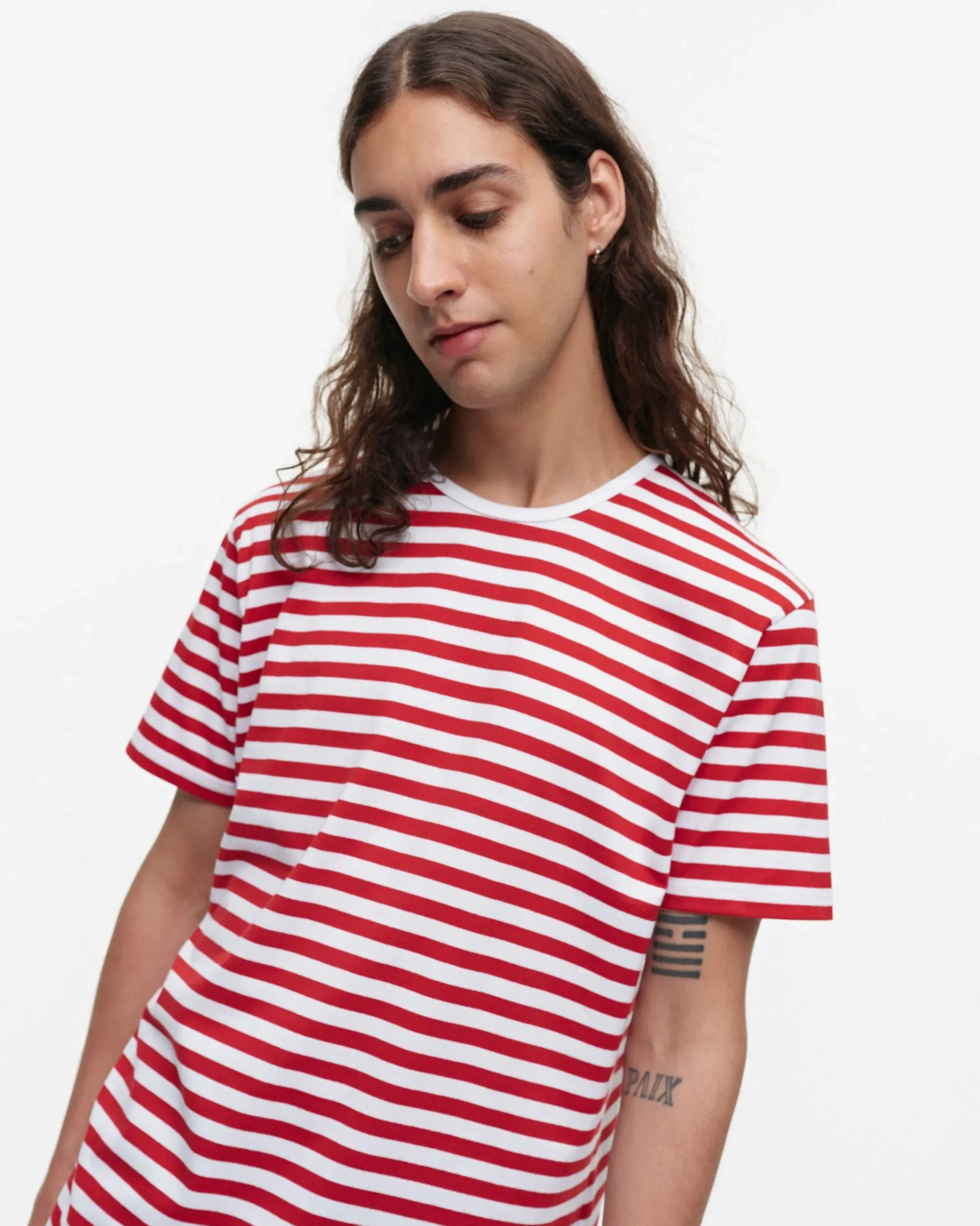 Lyhythiha-Paita On Valmistettu Klassisesta Tasaraita-Kuosisesta Puuvillatrikoosta. Paidassa On Resorikantti Pääntiessä Ja Suora Leikkaus. Paita On Unisex-Mallinen Ja -Kokoinen.