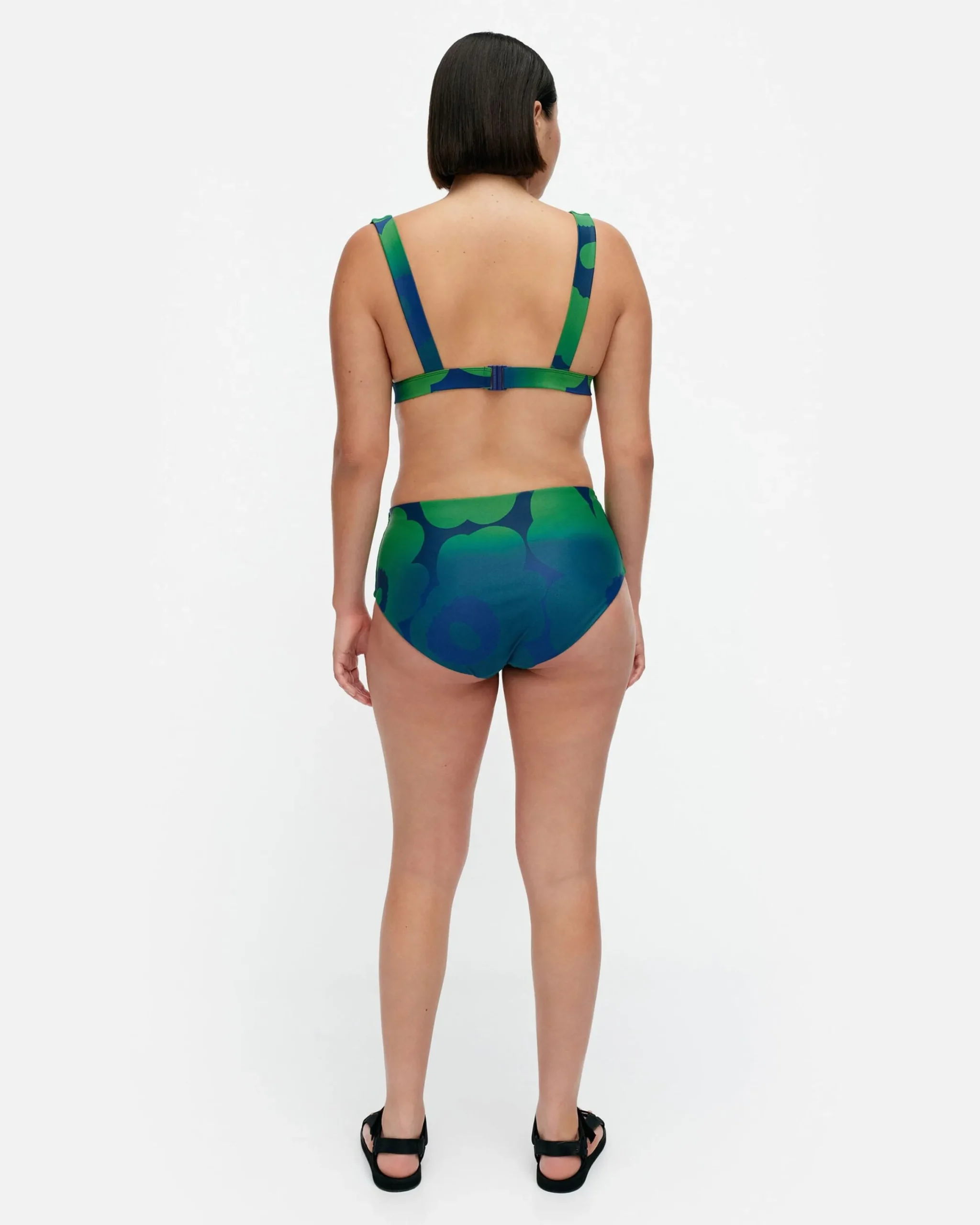 Mearta-Bikiniyläosassa On Liukuvärjätty Unikko-Kuosi, Jossa Värit Vaihtuvat Vihreästä Siniseen. Bikiniyläosa On Kokonaan Vuoritettu, Siinä On Rintaa Muotoilevat, Irrotettavat Kupit Ja Takana Solkikiinnitys. Materiaalilla On Upf 50+ -Luokitus.