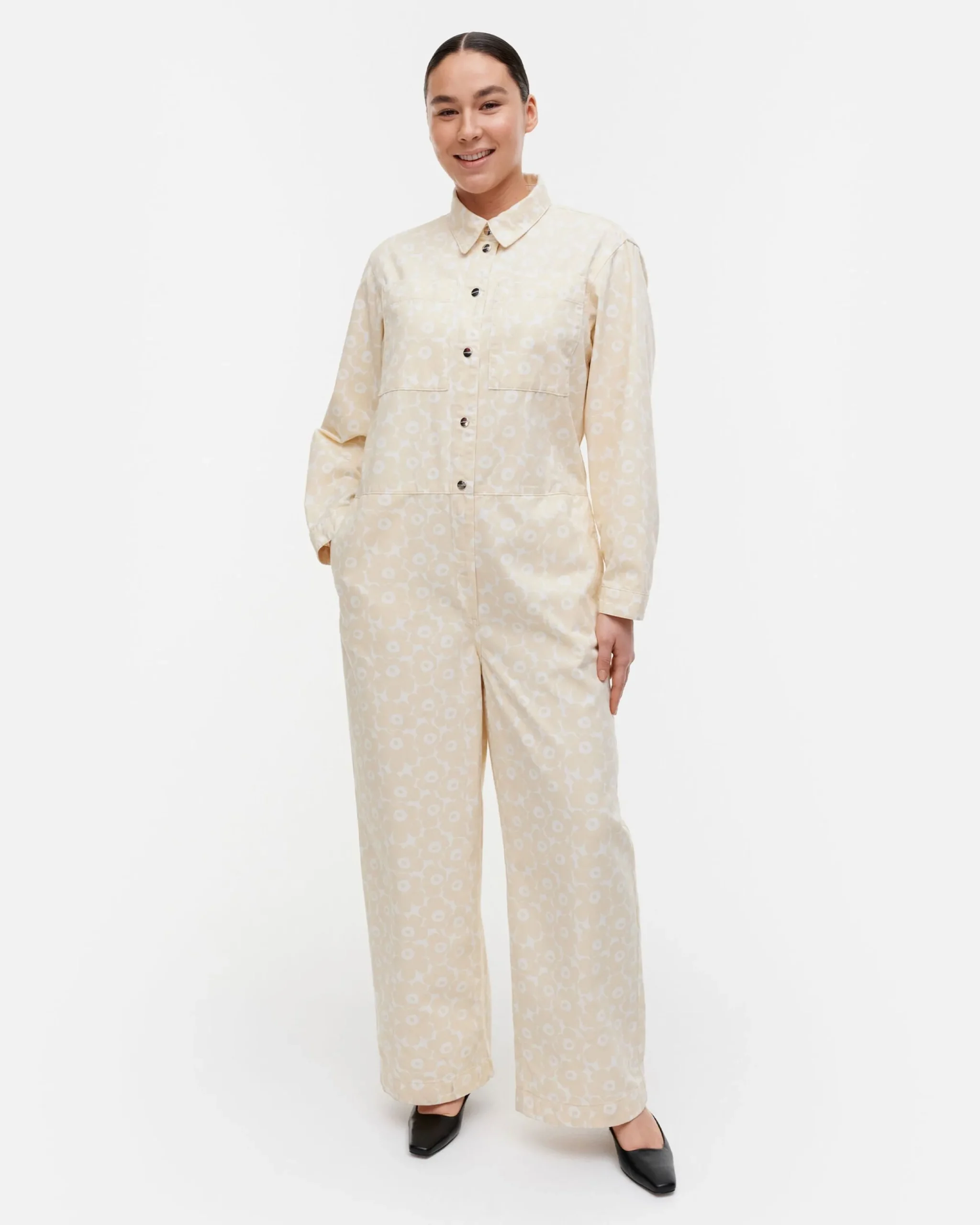 Papaver-Haalari On Valmistettu Luomupuuvillatvillistä Ja Siinä On Rento Istuvuus, Suora Leikkaus Sekä Unikko-Kuosi. Haalarissa On Paitakaulukset, Painonappisuljenta, Rintataskut Ja Sivusaumataskut. Takana On Selkäkaarroke, Kuminauhavyötärö Ja Paikkataskut. Hihansuissa On Halkiot Ja Painonapilliset Mansetit.