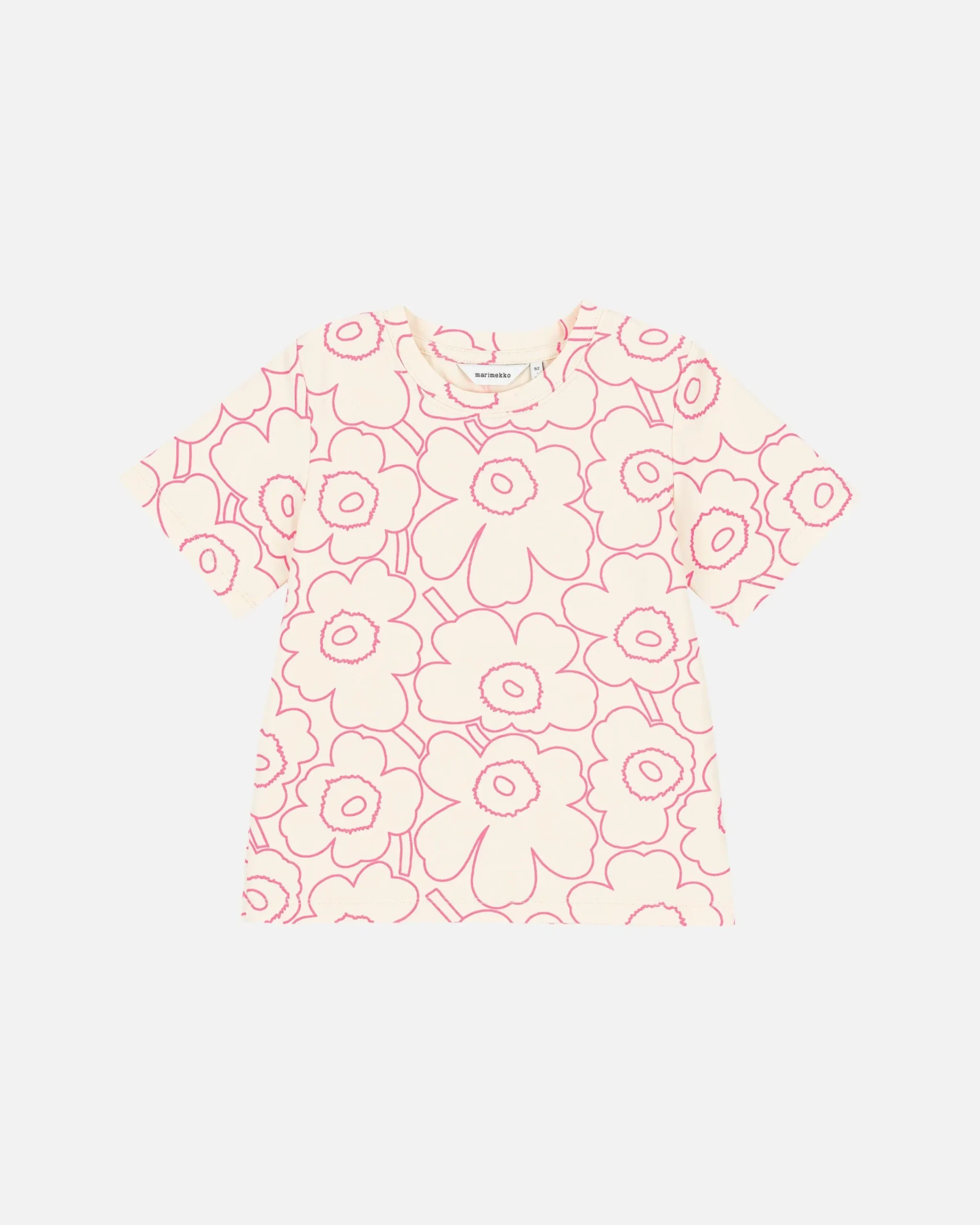 Lasten Puuvillatrikoisessa Soida-T-Paidassa On Rento Istuvuus Ja Suora Leikkaus Sekä Mini Piirto Unikko -Kuosi.