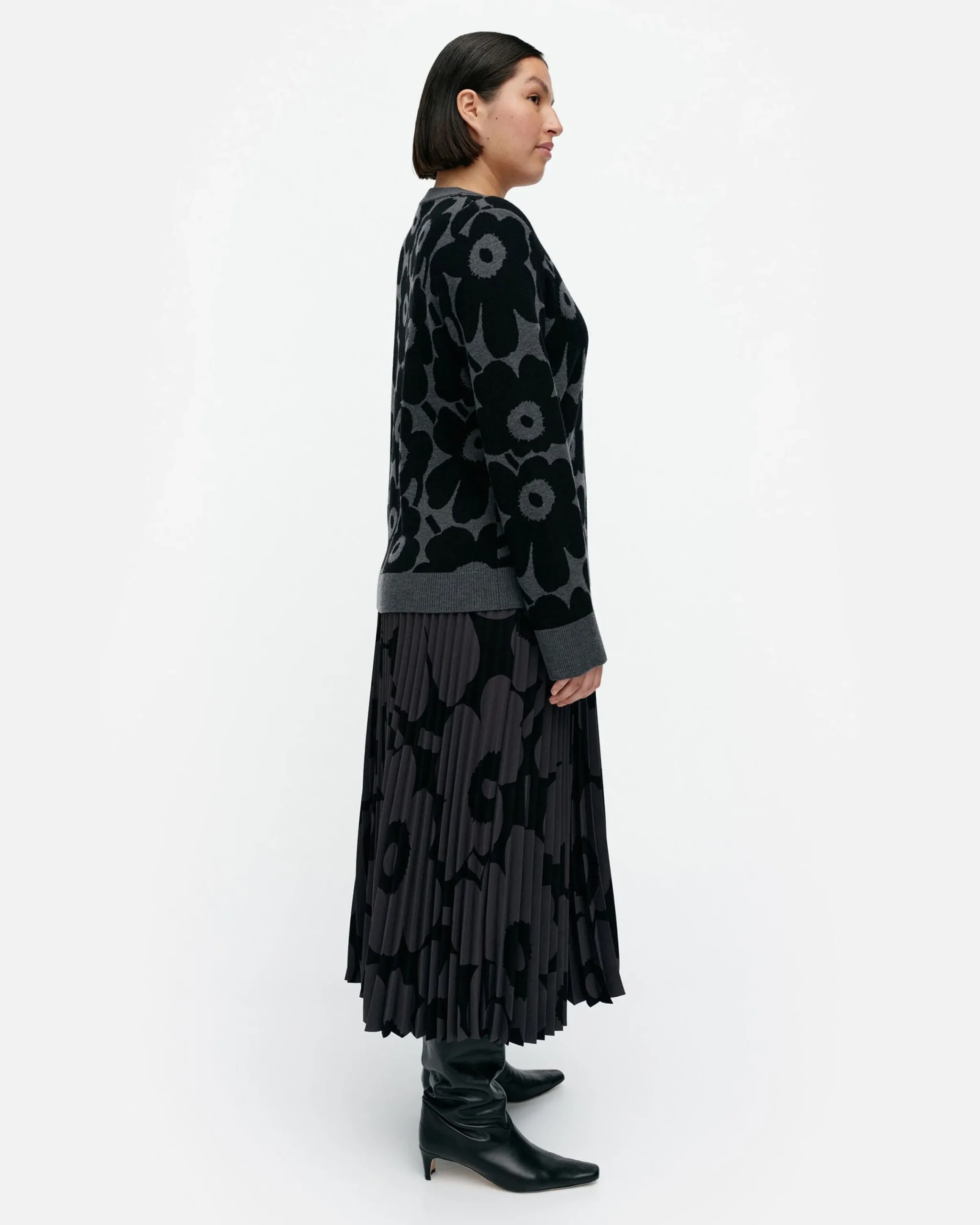Unikko-Kuosinen Tahti-Neulepusero On Valmistettu Sertifioidusta Merinovillasta Ja Siinä On Niukka Istuvuus Ja Suora Leikkaus. Neulepuserossa On Tuplaresori Pyöreässä Pääntiessä Ja Leveät Resorit Hihansuissa Sekä Helmassa.