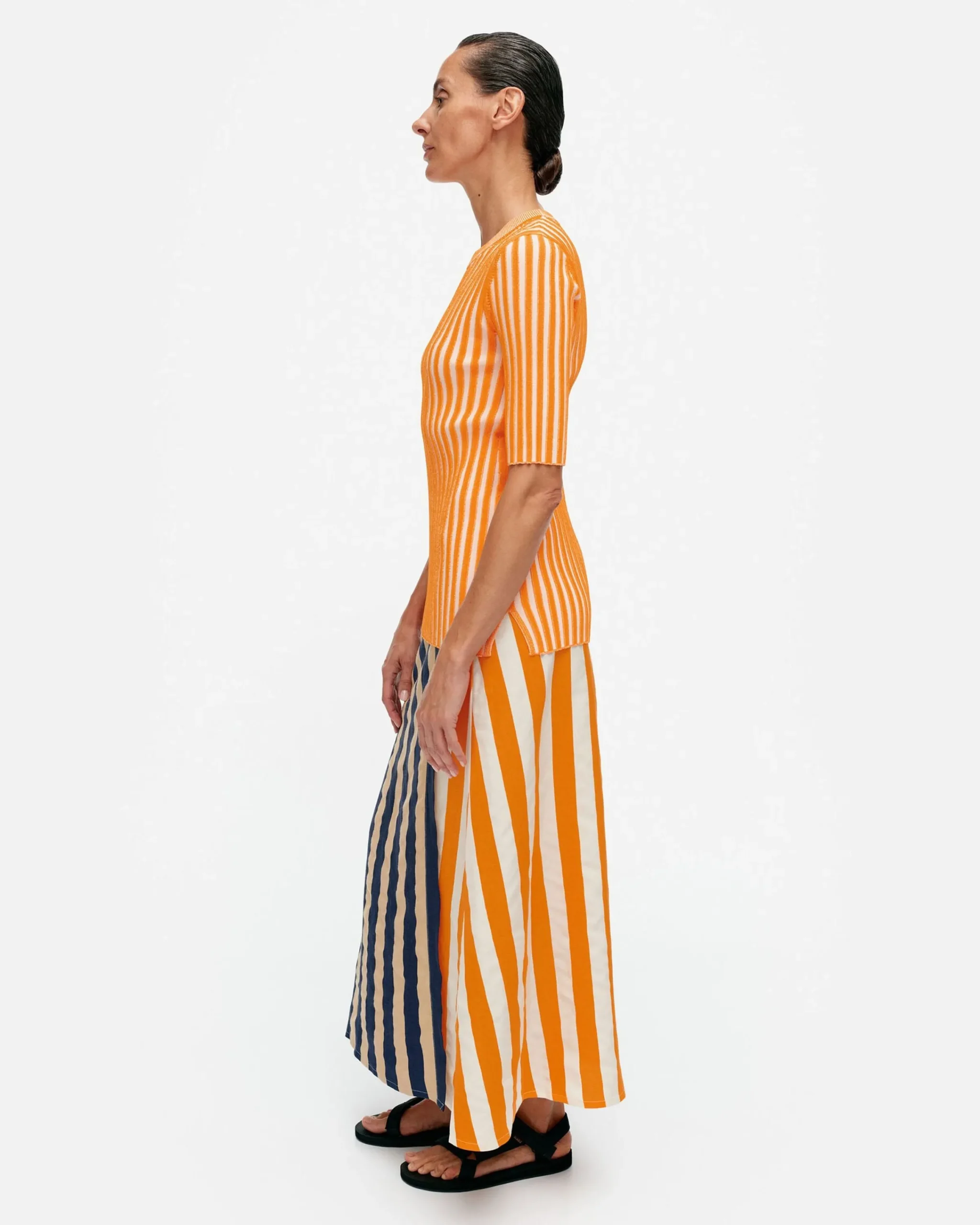 Raidat Ovat Aina Olleet Olennainen Osa Marimekon Kuviomaailmaa. Maija Isolan Suunnittelema Merirosvo Yhdistää Toisiinsa Kaksi Eriväristä Raitapalkkiparia.Koko & Istuvuus